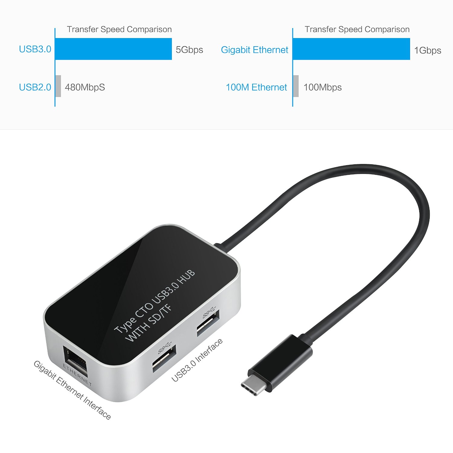 USB3.1 Type-C 3 in 1 combo HUB is 3 in 1 function, which integrates multifunctional adapter. Micro SD(TF)/SD card can be read, support 1000 m Ethernet, start with the 3 latest technology in one products, USB 3.0 date transmission speeds of up to 5 GMBPS, take your experience to the gigabit network; It is especially popular among the users of 12-inch MacBook and Chromebook Pixel.